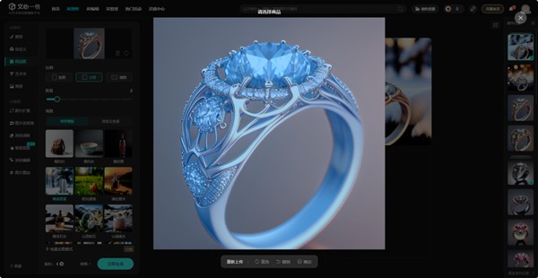 根据提示进行编辑可得到完整的商品图(这里是使用了模板中的唯美雪景场景,这里比较建议各位朋友还是输入详细的提示词去生成场景)