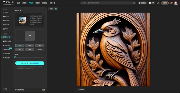 对已有图像进行画面扩展延伸,可指定具体方向进行扩展,支持对图像进行连续扩展生成。