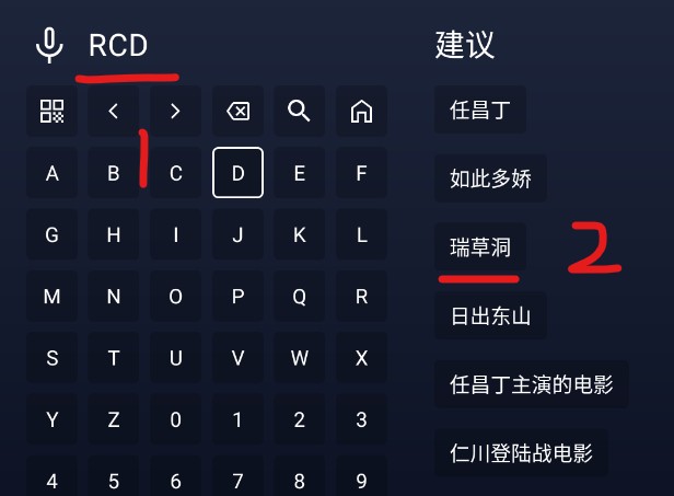 2、双击输入想看的影片的首字母缩写,然后在建议中点击对应的影片名称