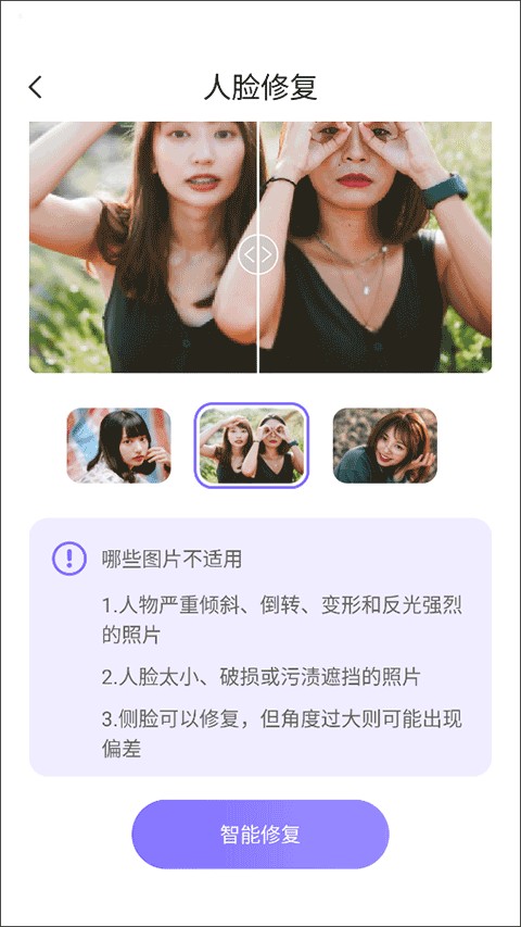 第一步,打开App后点击「人脸修复」。