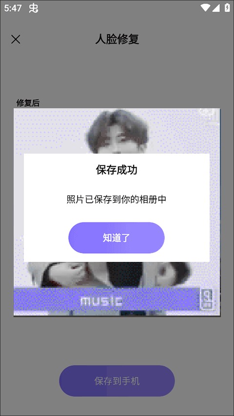 第四步,点击「保存到手机」,这样修复后的照片就保存到你的手机里了。