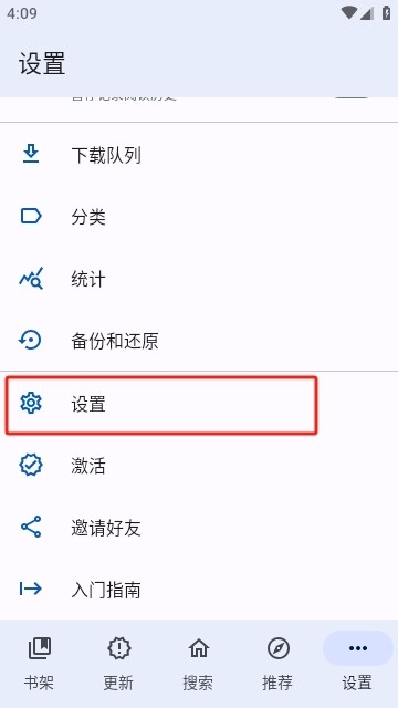 在首页点击设置。