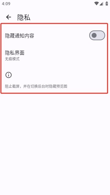 在这里可以管理通知栏信息的推送,开启无痕浏览。