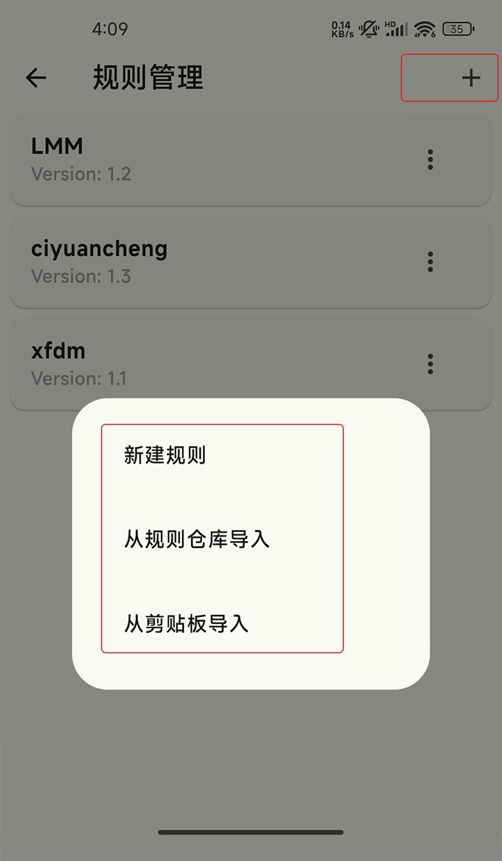 2、点击“+”即可添加规则,支持自行新建规则或是导入