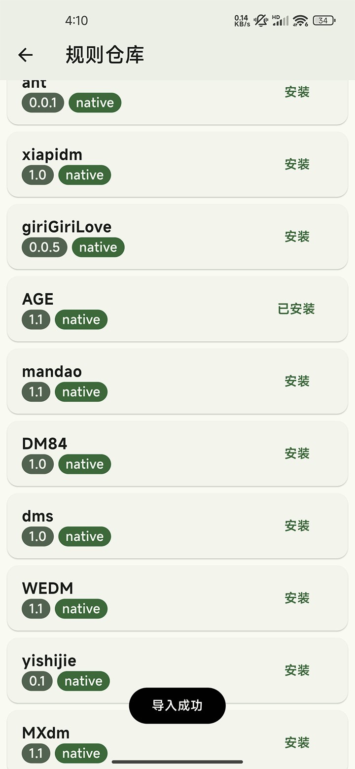 5、其中的规则很多,很多用户都很纠结用哪个好,小编觉得kazumi规则推荐添加AGE、AnFuns、clicli、omofunz,安装添加完成后可在番剧中看到