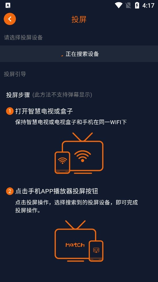 4、第四步:软件会自动搜索电视设备,连接成功以后就能开始投屏了。