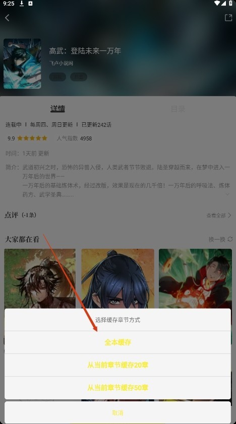 2、根据自身的需要,可以选择全本、50章、10章进行下载;
