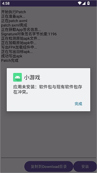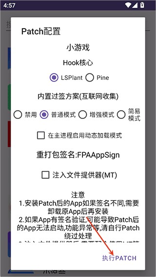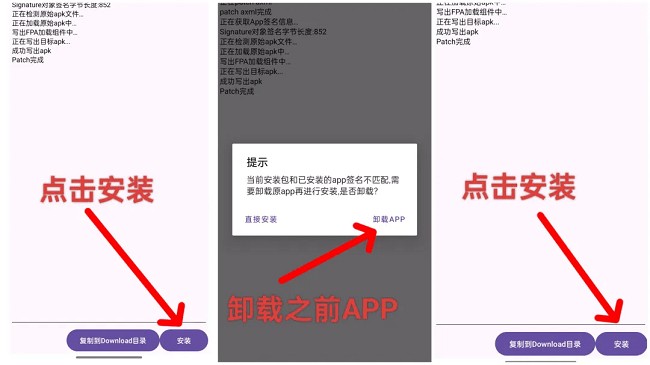 1.安装Patch后的App如果签名不同,需要卸载原App后再安装