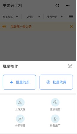 3、进入app可以查看全部分组,根据需要打造云端手机