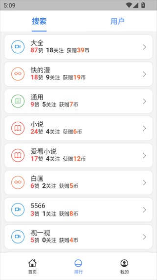 4、切换到用户,可以看到分享资源比较多的热门用户。