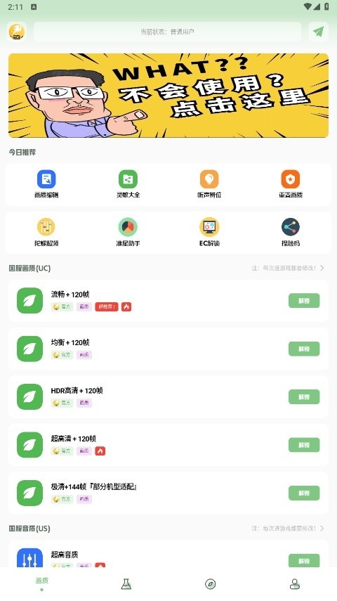 1、打开“画质救星”,超高清120帧?只需轻轻点击“人物解锁”,就能畅享丝滑体验。不仅如此,灵敏度调节、准星辅助、捏脸码等实用工具一应俱全。