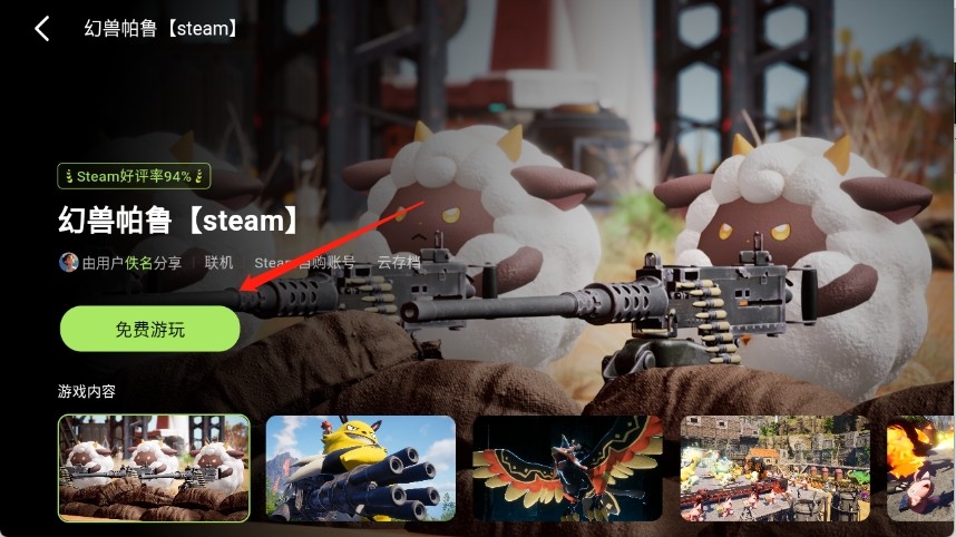4、点开想玩的云游戏进入详情页,点击“免费游玩”即可。
