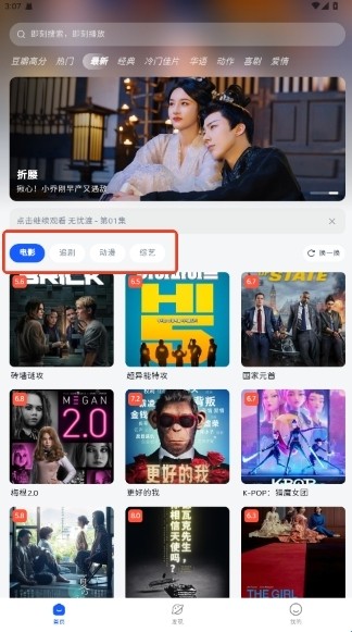 按电影类型、电视剧类型或评分进行分类筛选,方便用户精准查找。