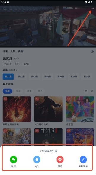 支持将喜欢的电影或剧集分享给朋友,分享好剧。
