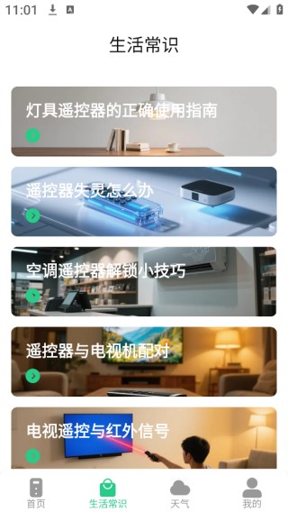 3、进入“生活常识”板块,查看各种遥控器使用的常识知识。