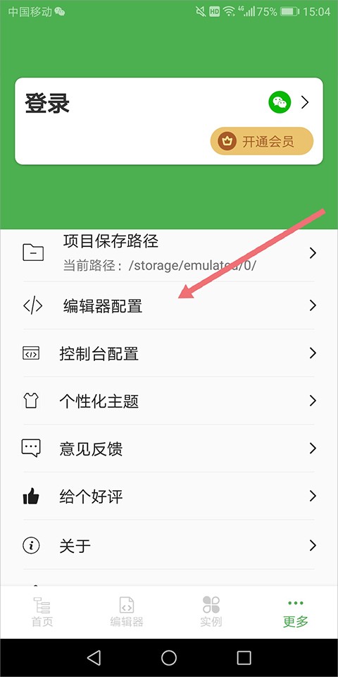 1、用户进入更多页面中点击【编辑器配置】