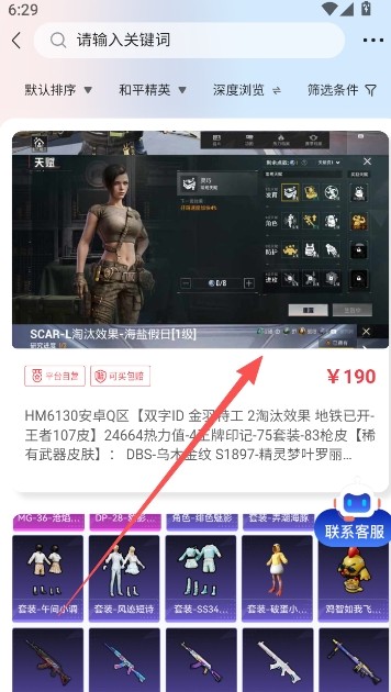 4、系统默认排序,为你推送可能符合你的购买需求的游戏账号。