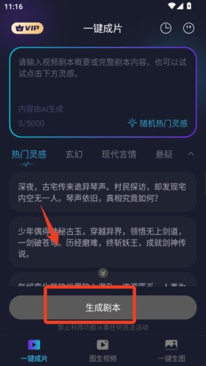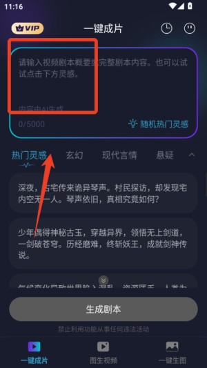 一键成片2026是一款功能十分强大的ai视频创作类的,在这里你可以利用ai来顺利的生成各种视频,在这里你可以输入更多的信息,全面点燃你的创意,生成的内容全面符合你的心意,图生视频将你的回忆全面的记录下来,快来下载吧。