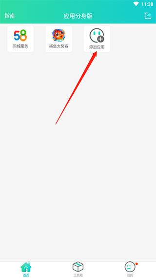 1、微微分身版可以为手机中应用提供分身,为用户们介绍使用率最高的是常见的社交分身开启方式,运行软件,在首页有个添加应用,我们点击它;