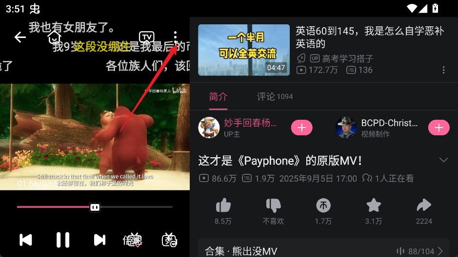 哔哩哔哩HD怎么调画质/缓存视频1、进入哔哩哔哩HD后,打开你想观看并缓存的那个视频。