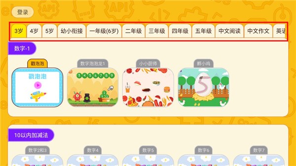 1、下载安装软件,进入以后在顶端选择孩子的年龄和学习阶段;