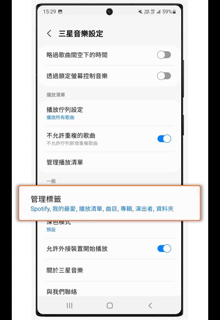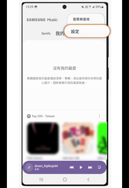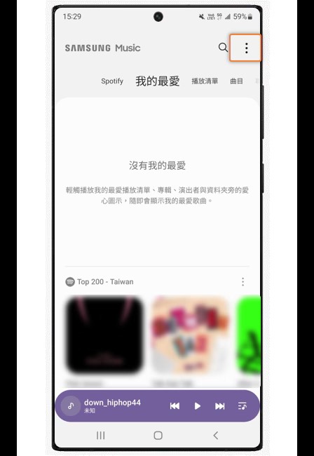 1. 开启三星音乐国际版后,点击右上角更多