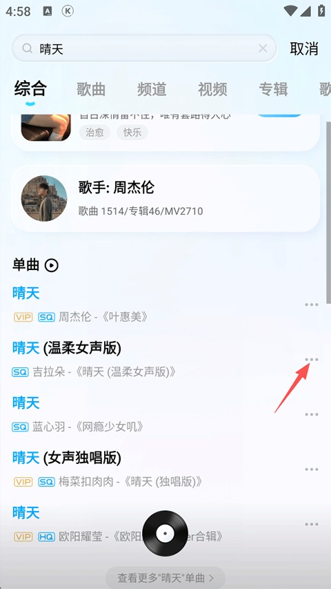 酷狗概念版怎么设置铃声?1、在搜索栏搜索想要设铃声的歌曲并点击右侧的【...】扩展按钮;