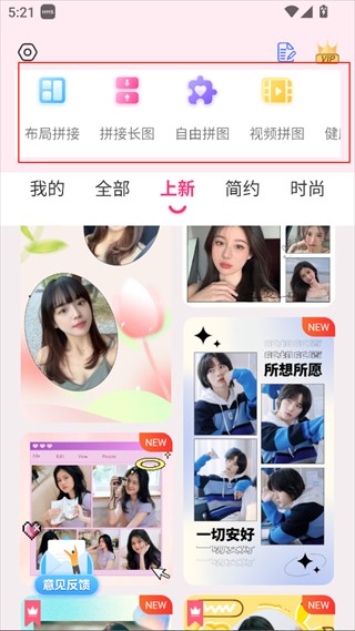 1、打开拼图秀秀2026,可点击上方功能或直接选择模板。