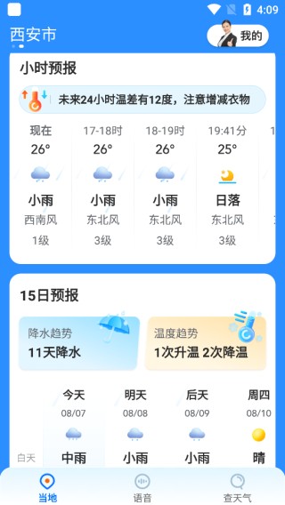 2、具有语音播报功能,无需操作也能轻松的查看天气。