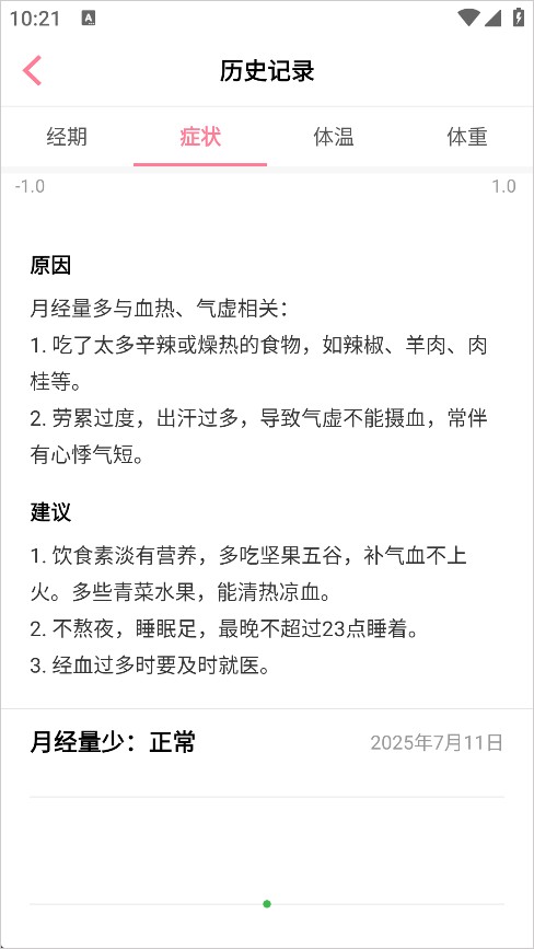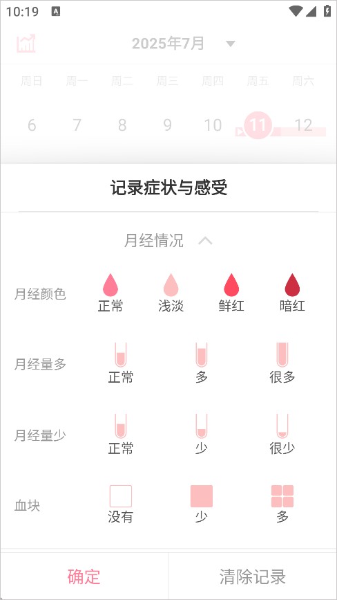 2、然后选择记录症状