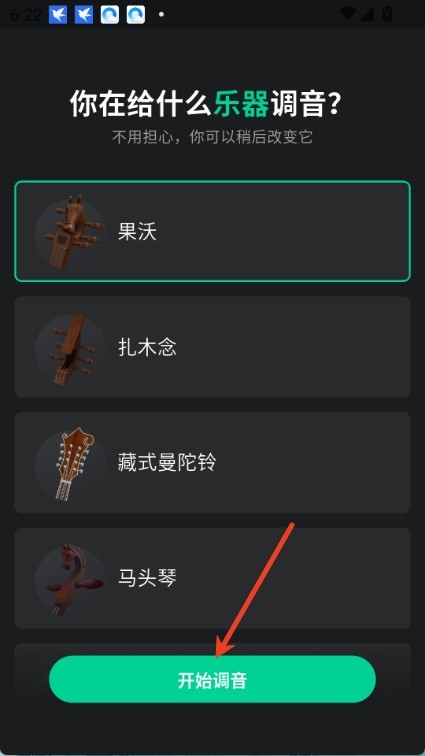 1、打开雪怪调音器app,首先选择自己要调音的乐器