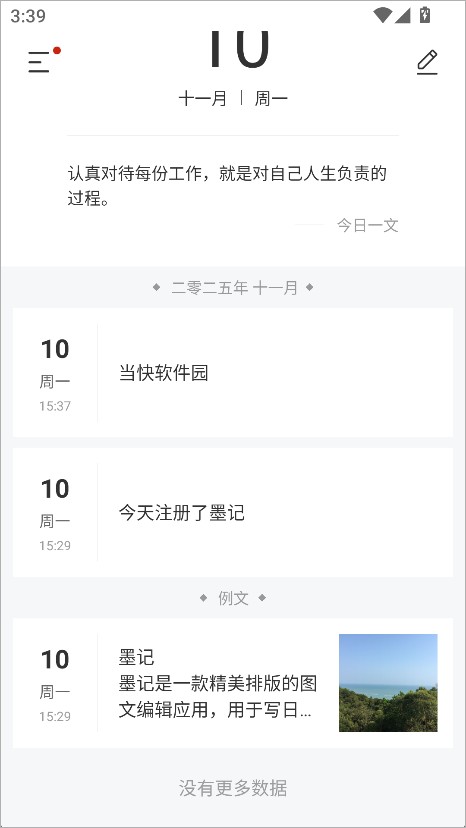 墨记日记手机版是一款实用的手机日记软件。软件采用简洁的使用界面设计,用户能够根据自己的需求来选择和使用各种类型供日记模板和辅助功能,为用户带来更加便捷的使用功能。还为用户提供云端保存和加密功能,充分保证用户的数据安全。需要的用户赶紧来下载吧。