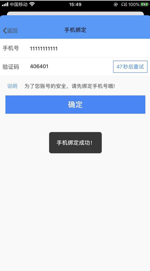 3、账号未绑定手机号的情况下,点击“登录”后,进入【手机绑定】页面。