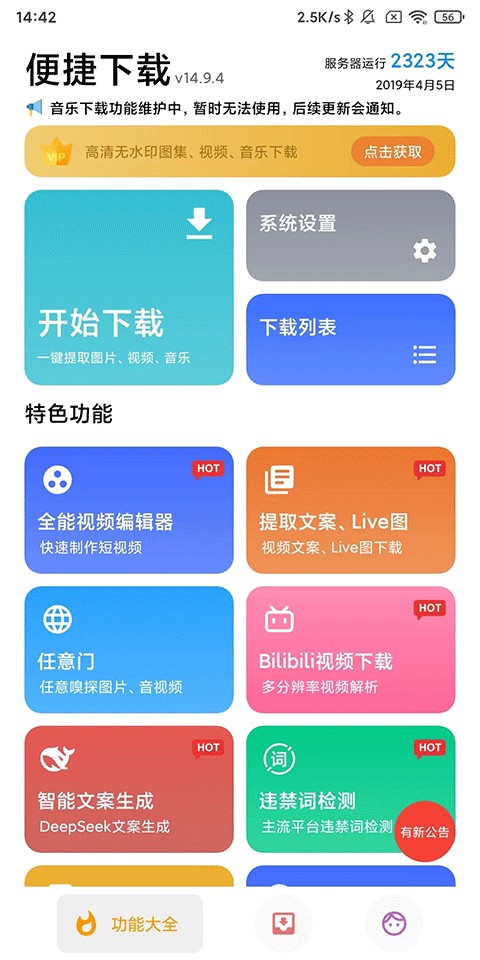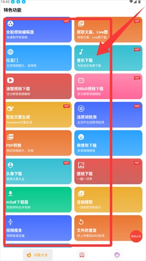 1、全能视频编辑器,提取文案&live图,任意门,bilibili视频下载,deepseek智能文案生成,违禁词检测;