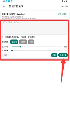 2、在功能页点击智能文案生成,进入操作界面。