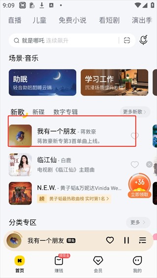 4、除此之外酷我音乐app除了这些功能外还可以赚点零花钱点击旁边的小金币