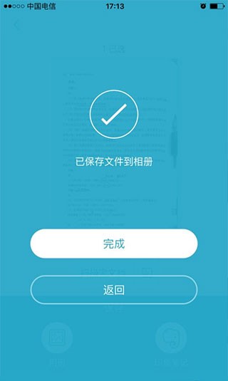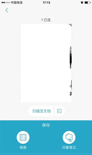 2、点击右下角的蓝色的对勾,就能进入保存界面。会请你选择保存位置,我一般是保存到手机相册,你也可以选择“印象笔记”。