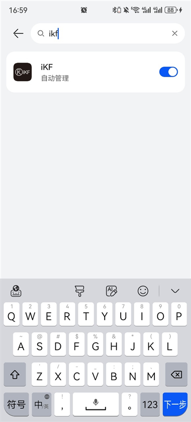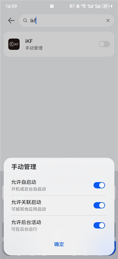 4、开启iKF的“允许自启动”、“允许关联启动”和“允许后台活动”开关;