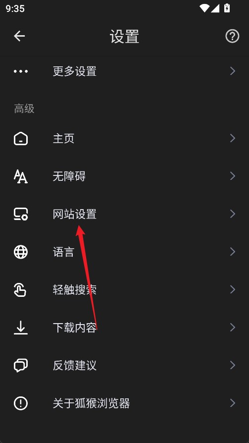 3、在设置页面选择网站设置
