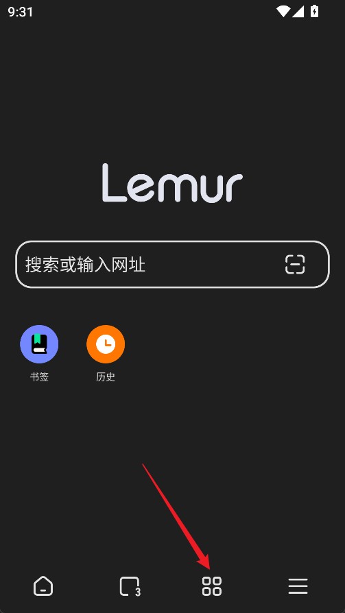 1、进入狐猴浏览器App后点击下方方形图标
