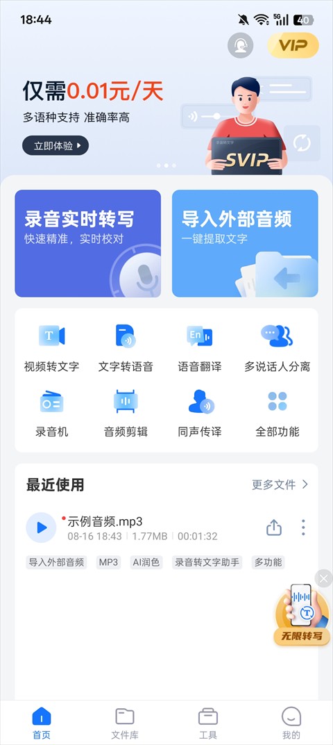 录音转文字助手app是一款智能好用的全能语音转写类软件。凭借其强大的功能解决语音记录繁琐多场景转写不便的问题。实时录音转写、音频视频导入转写,转写准确率非常高,支持多语种、多方言识别,兼容性强,使用更加的简单,快速完成各种音频的转换。需要转换软件的用户快来下载使用吧!