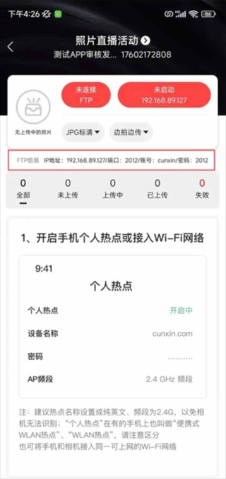 3、一台手机最多支持接入3部带FTP功能的相机传输。