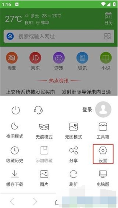 2.随后在下方会弹出一个选项框,需要找到其中的【设置】图标进行点击。