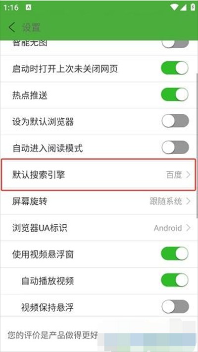 3.进入到【设置】界面之后,点击选项列表中的【默认搜索引擎】。