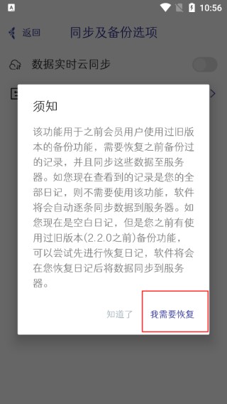 3、进入之后点击恢复日记