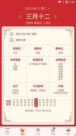 2、这是黄页,可以查看吉时逢凶等。