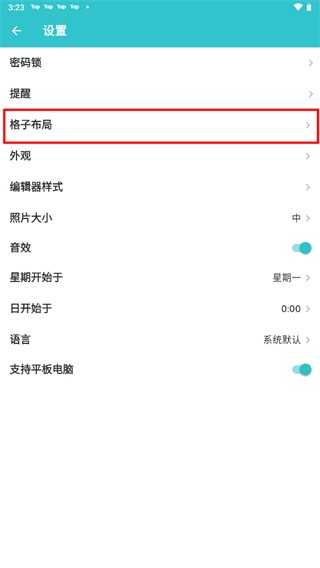 2、点击格子布局。