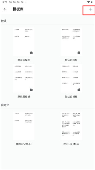 2、进入模板库后,点击右上角的加号图标。