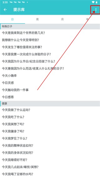 2、进入到提示库页面,点击右上角的三点。