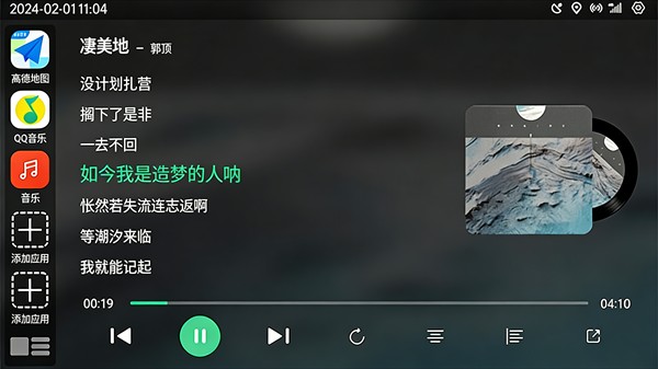 音乐控制:右侧音乐卡片可直接进行播放/暂停/切歌操作。